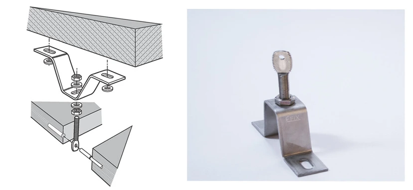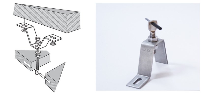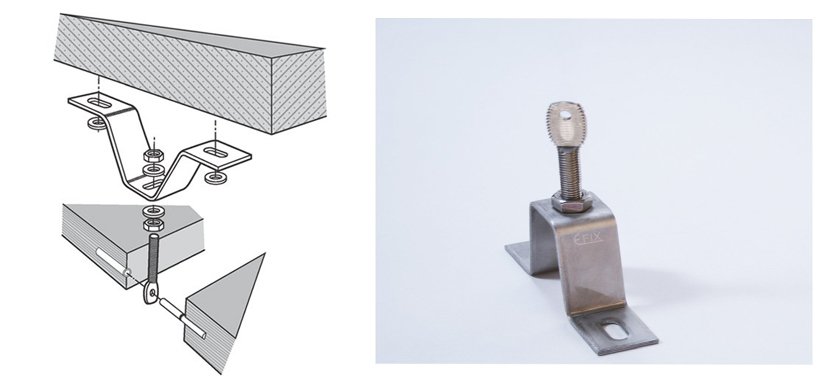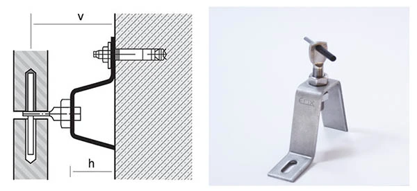 Os suportes de fixação, independentemente do tipo, são fabricados em aço inoxidável A2 (AISI 304) ou A4 (AISI 31 6).